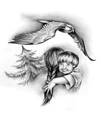 Представил себя Иванушка в образе птицы, да так отчётливо, что даже глазом моргнуть не успел, как обернулся ясным соколом. Взмахнул Иванушка руками - крыльями и стрелой устремился вверх. Поднялся он высоко в небо, расправил крылья, плавно парит в воздухе.